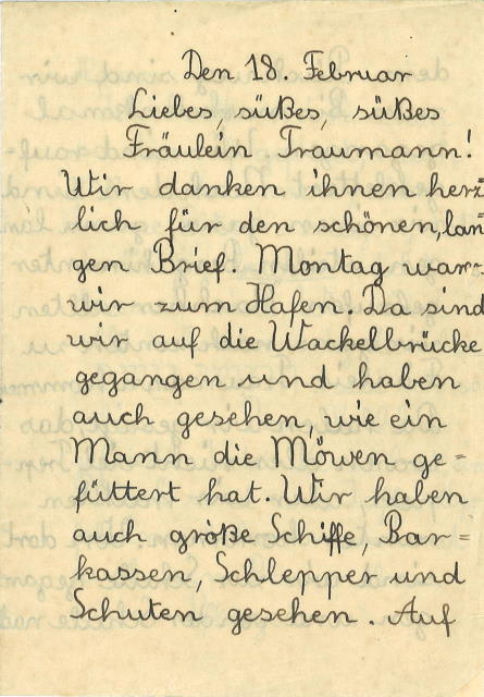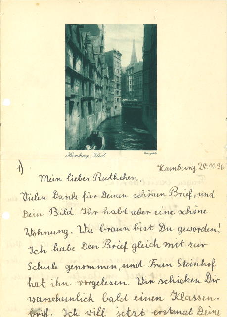 From 1933 on, Jewish people in Germany increasingly had to part from relatives, friends and acquaintances. Letters were the only way to stay in touch. The Israelitische Töchterschule Memorial and Education Center holds a collection of letters that contain messages by former schoolgirls to their teacher, Lilli Traumann, who emigrated to Palestine in 1933. The lovingly written and illustrated letters of the children focus in particular on the pain of separation from their teacher and the hope of meeting again in Palestine. Unfortunately, we do not have any further biographical background on many of the girls.