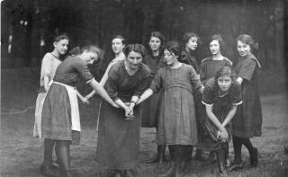Many pictures of school trips survived. They show typical excursion destinations as they are still visited by many school classes from Hamburg today: the port of Hamburg, the Lüneburg Heath, and the city of Lübeck. The pictures express the relaxed atmosphere, which was in contrast to the often very strict instruction. Also, the gender separation customary in schooling was loosened during the excursions. From the end of the 1930s onwards, prohibitions for the Jewish population made excursions increasingly difficult and eventually impossible.