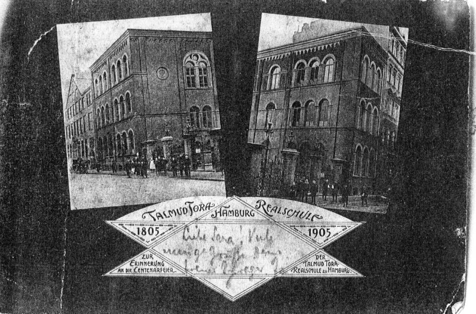 The Talmud-Tora-Schule [Talmud-Torah School] was founded in 1805 as the Israelitische Armenschule der Talmud Tora [Talmud Torah Israelite Charity School], an Orthodox religious school for boys in Hamburg’s Neustadt district. Under the leadership of Rabbi Isaak Bernays, the school developed into a primary school in 1822. In addition to religious instruction and Hebrew studies, other subjects such as German, history and natural history were part of the curriculum. In 1870, the school received state recognition as a “Höhere Bürgerschule” [secondary school].