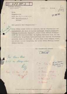 The Hamburg senator and SPD politician Gerhard Brandes repeatedly encouraged the city’s First Mayor, Herbert Weichmann, to establish contact with “former fellow citizens of Hamburg now residing abroad” who had been persecuted under National Socialism. Brandes, who had himself suffered persecution during the Nazi era, suggested sending New Year’s greetings and “gifts as remembrances.” Herbert Weichmann had Brande’s proposal reviewed by employees of the Senate Chancellery and subsequently rejected it. Weichmann, who was Jewish himself and had survived the Nazi era in exile, emphasized that he was sympathetic to the suggestion on a human level, but justified the rejection with administrative obstacles.