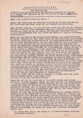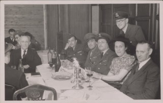 As a founding member and first chairman, Harry Goldstein (1880-1977) was a central figure in the reconstruction of community life. Goldstein’s memoirs, recorded by his son, and his estate are also important sources for early postwar history. The annual report and the photograph of the Seder evening exemplify the complex challenges: in addition to general problems such as the poor supply situation and the lack of housing, these were characterized by inner-Jewish conflicts, the confrontation with the occupying forces, and the traumatic experiences of the survivors. Goldstein presented the annual report at the election meeting of the Jewish congregation on March 14, 1946. The meeting served to prepare for the first advisory council elections in the newly founded congregation, which were to take place at the end of April. The greeting of those present was followed by an appeal to remember the many victims of National Socialist persecution. The review of the previous months points to the many provisional arrangements, the network of different actors and the urgent tasks, especially with regard to support services and the reconstruction of the religious infrastructure. The photo shows Harry Goldstein together with British soldiers during the Seder evening in April 1946. Such shared moments were contrasted by an often difficult relationship with the British occupation forces in everyday life, which, for example, was hesitant to implement the formal recognition of the congregation as a corporation under public law.