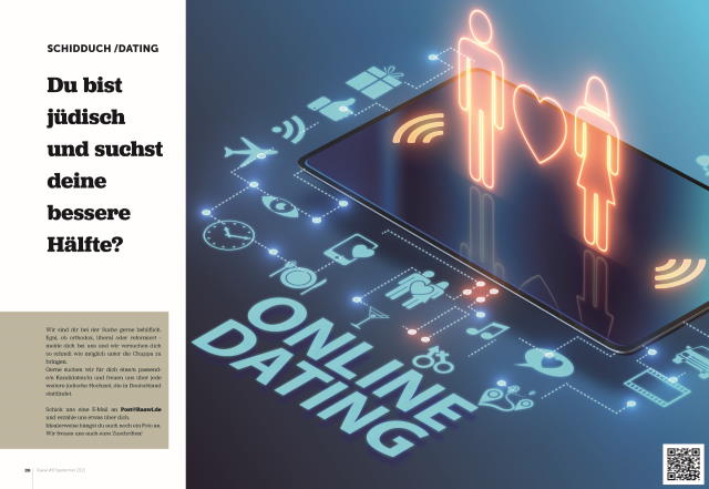 This dating ad was published in the Rosh Hashana issue of Raawi Magazine in September 2021. Using modern means, the tradition of matchmaking is continued here: Interested persons – the majority of whom are women – can apply. In addition to personal details and a photo, the candidate is introduced by the local rabbi. Unlike the big dating portals, the matchmaking process is not based on algorithms, but on the expertise of selected congregation members, including the wives of Hamburg’s two rabbis. The first wedding of an international couple who met through this matchmaking service has already been celebrated in Hamburg.