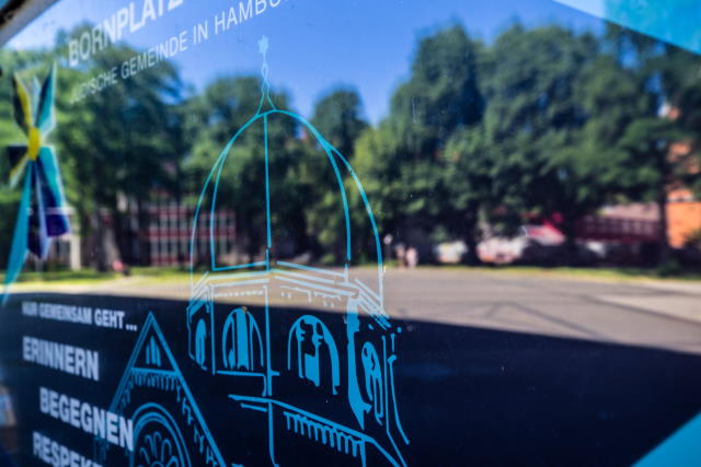On today’s Joseph-Carlebach-Platz, the former Bornplatz in the center of Hamburg’s Grindelviertel district, the main synagogue of the Orthodox Synagogue Association within the German-Israelite congregation stood from 1906 until its demolition by the National Socialists in 1939. Since the end of the 1980s, the vaulted ceiling of the synagogue has been embedded in the ground as a mosaic. The memorial, designed by artist Margrit Kahl, has been supplemented over the years by various commemorative plaques, and the square itself is central to the annual commemorative event held on 9 November.