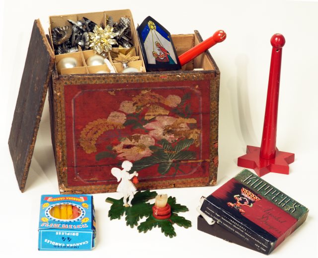 The estate of the Salzberg couple also contains a box with Christmas decorations and Hanukkah utensils. Hanukkah, the Festival of Lights in memory of the cleansing of the Jerusalem Temple by the Maccabees, is one of the most important festivals in Judaism, which is celebrated for eight days in November/December. On the occasion of the festival in December 1949, Max Salzberg published a short story in the Allgemeine Wochenzeitung der Juden in Deutschland about a “stolen menorah.” Lighting the candles of the eight-armed candelabra is one of the most important festive traditions, and the Salzbergs, too, had Hanukkah candles in their household. How exactly they celebrated Christmas and Hanukkah is not known. However, it is safe to assume that religious celebrations were important for the couple.