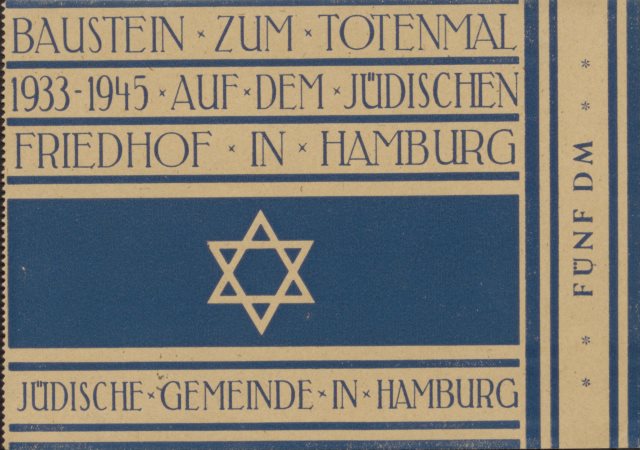 Max Salzberg’s teaching work made him an important part of the newly founded Jewish congregation in Hamburg in 1945. The couple was also involved in other congregation affairs. In 1949, for example, they donated to the construction of the 1933-1945 Memorial, which was erected by the Jewish congregation on the Jewish cemetery in Hamburg-Ohlsdorf.